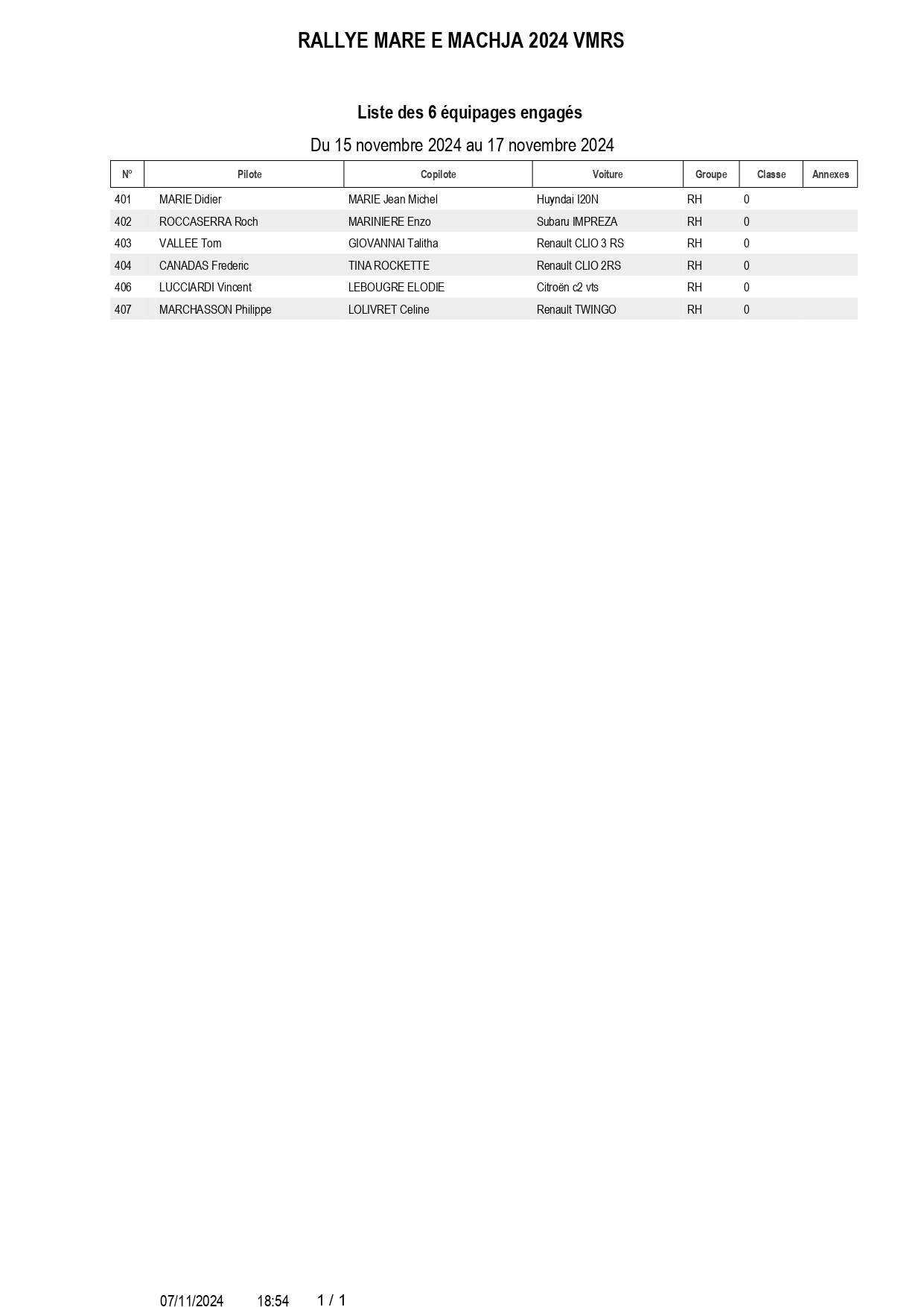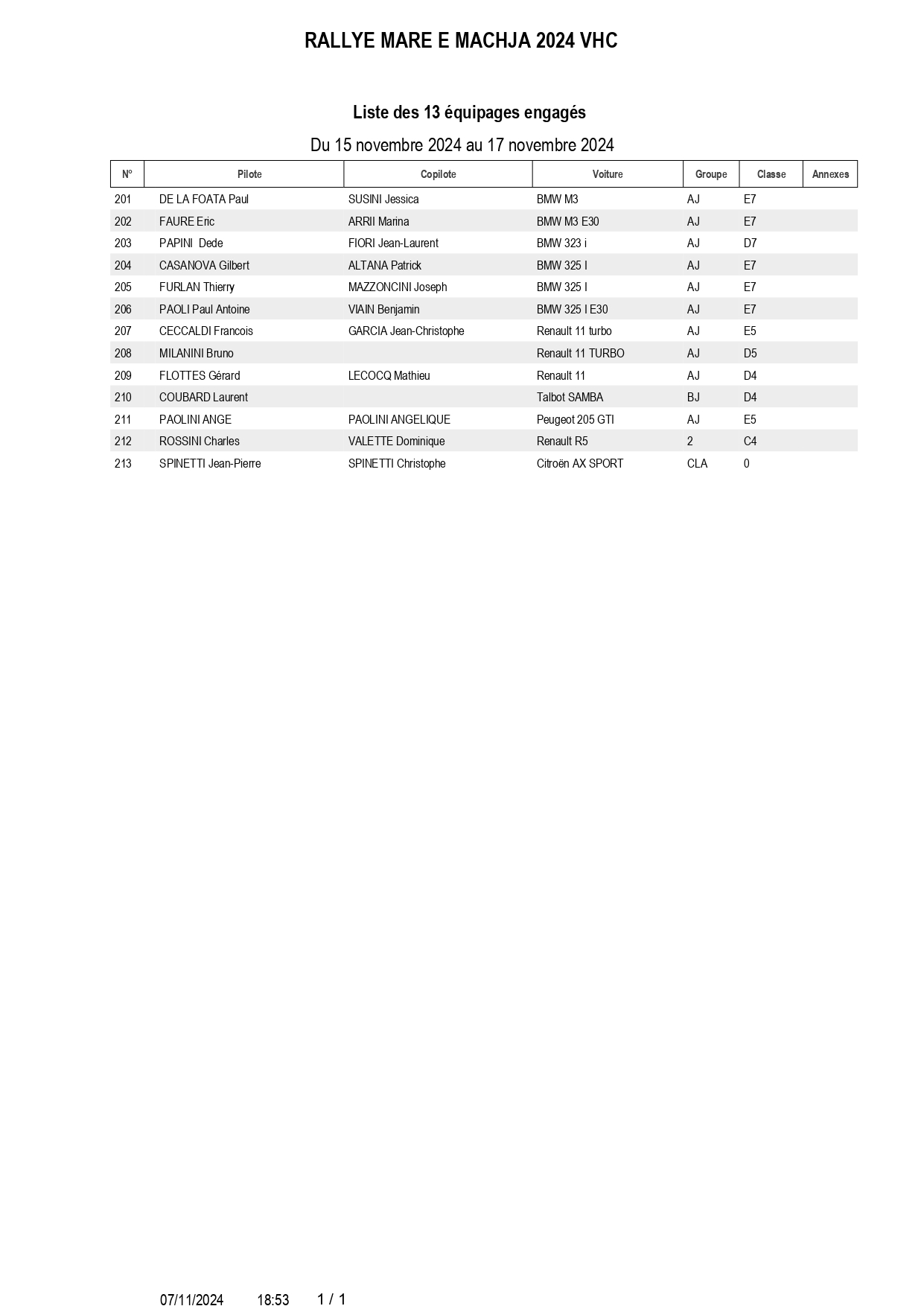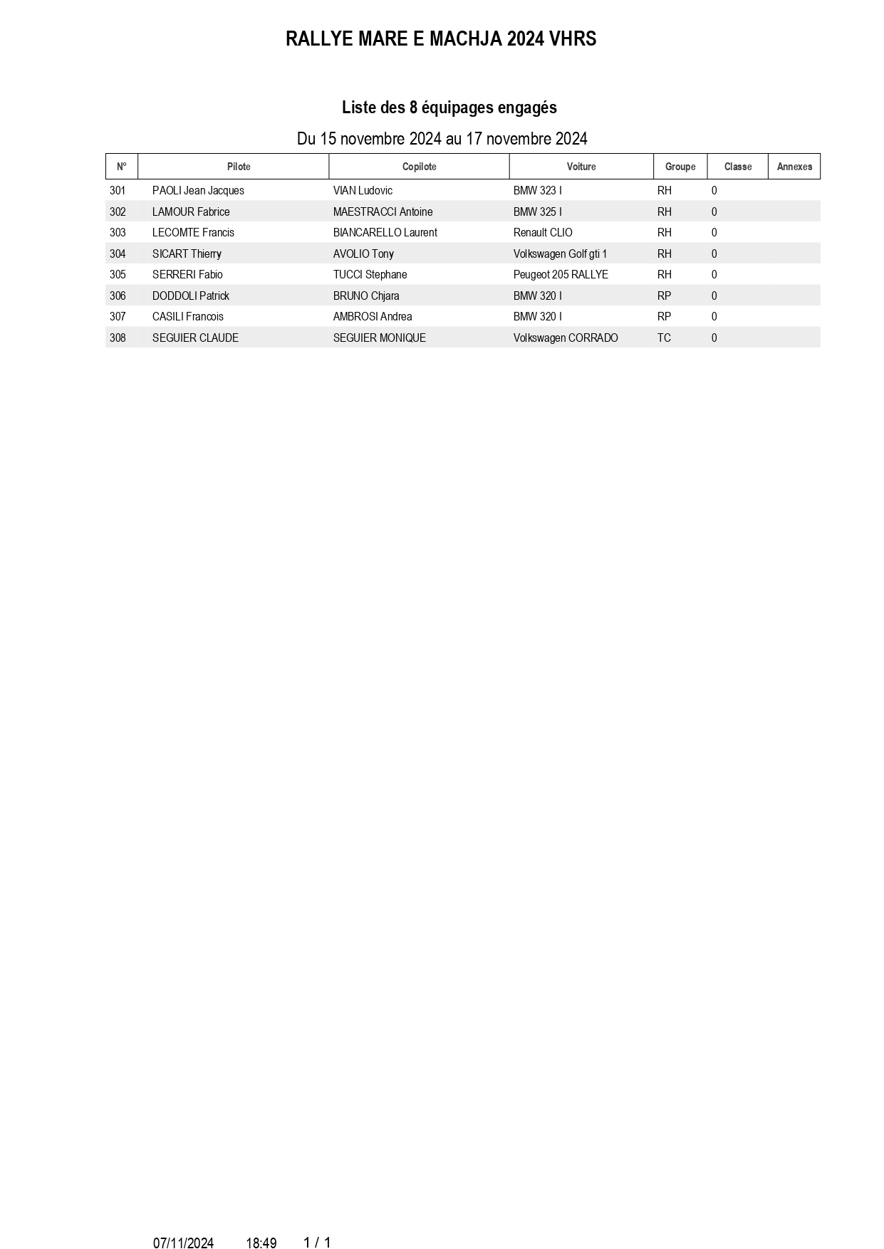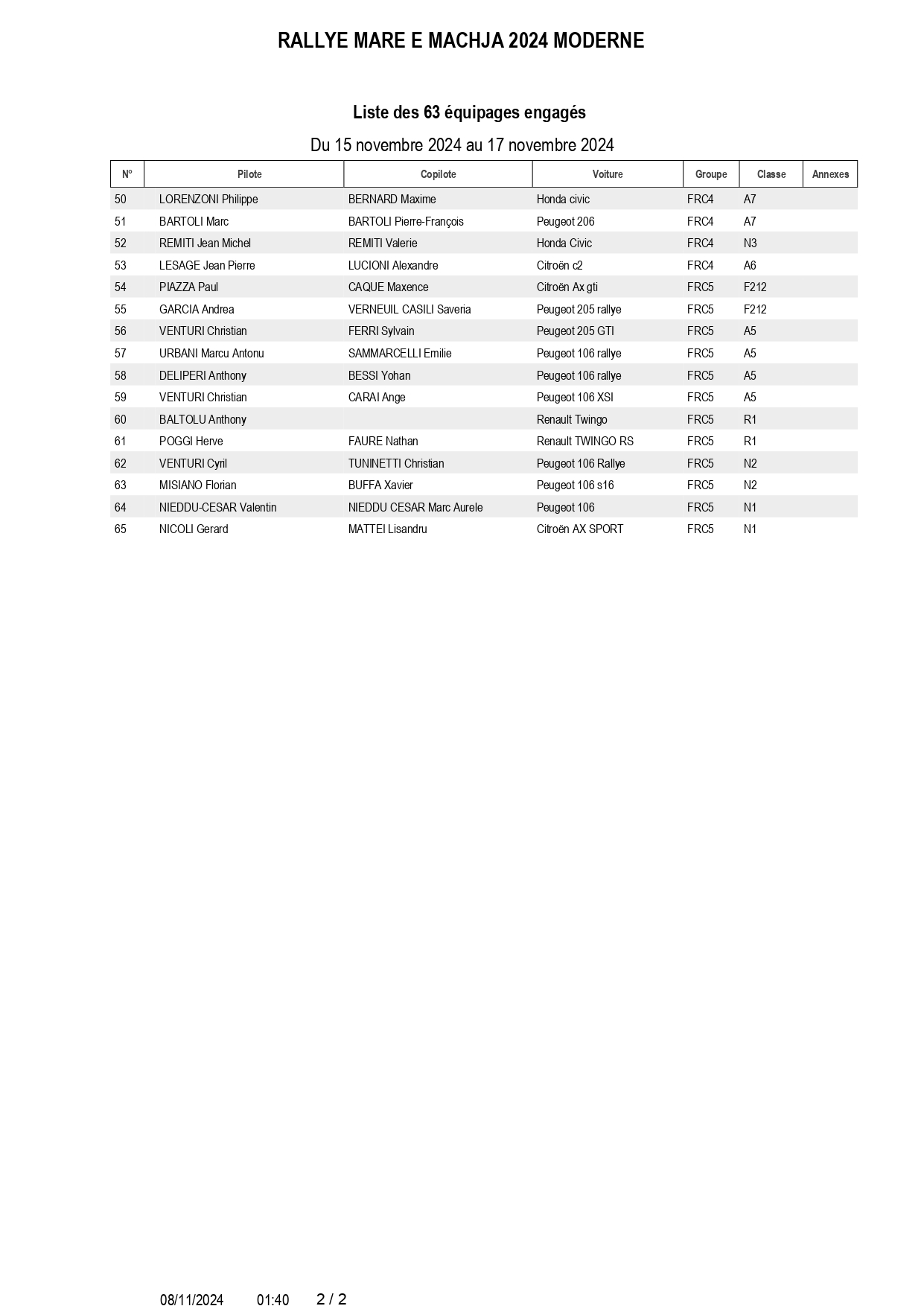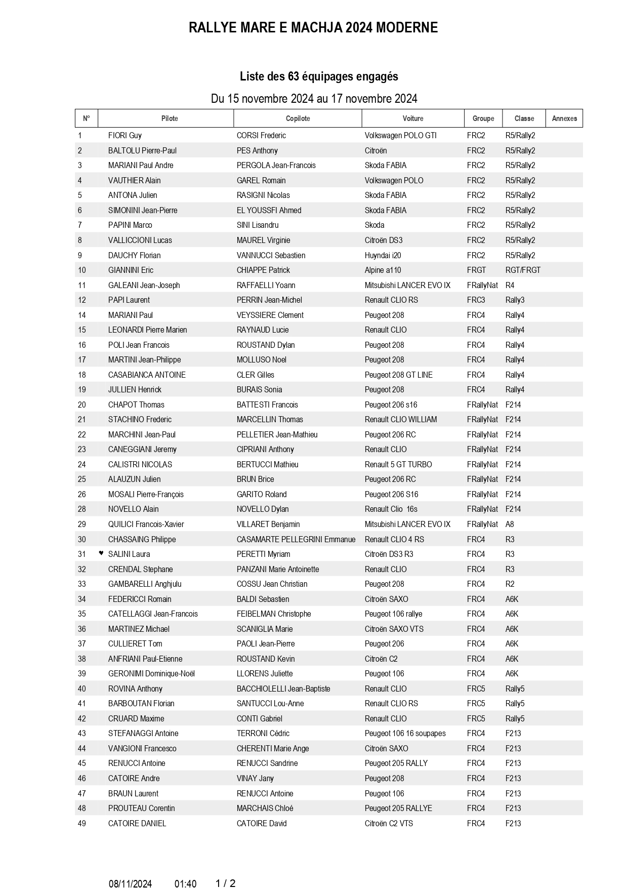 Liste des engagés par Numéros de Course Mare è Machja 2024